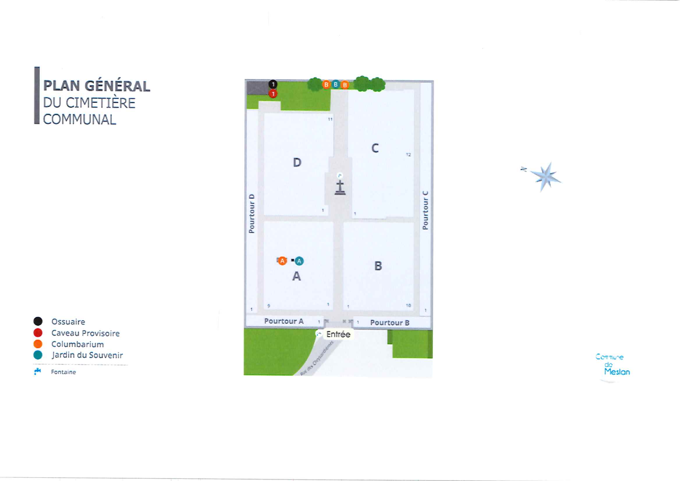 Le Cimetière de Meslan est situé dans le bourg de Meslan et est accessible par la Rue des Chrysanthèmes.